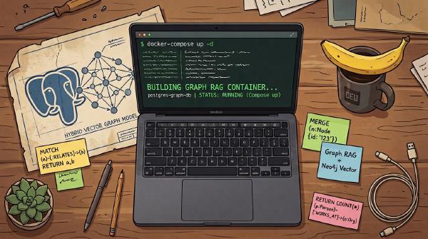 Part 2 of 3. A complete Docker setup for Postgres 16 with pgvector and Apache AGE, plus your first vector similarity query and your first Cypher traversal — with the gotchas that cost me an afternoon the first time.